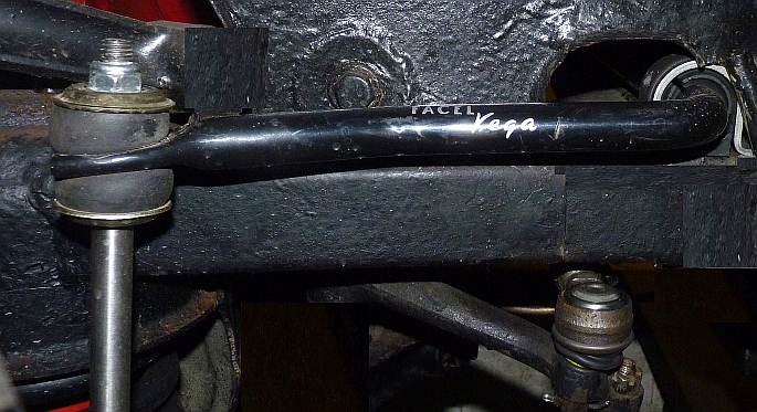 Ein Stabilisator in einem alten oder ausgeriebenem Gummilager kann nicht mehr richtig arbeiten. Auch haben wir im Vergleich zu anderen Fahrzeugen im Facel einen zu schwachen Stabi eingebaut. Es kann nicht richtig sein, dass die Stabilisatoren sowohl bei der Facellia, als auch bei den schwereren V8-Coupes und sogar beim Excellence die gleiche Dimension (= 20mm Stahldicke) aufweisen. Deswegen haben wir einen Stabilisator aus 23mm Federstahl fertigen lassen. Dies bedeutet eine um 40% verbesserte Dämpfung gegenüber einem neuen und optimal gelagerten originalen Stabi. Bei der Kontrolle der mir zugänglichen Facel waren die Stabi's teilweise von Rost angefressen (hatten also noch nicht einmal mehr 20mm Stärke), oder die Gummilager waren nur noch rudimentär vorhanden. Bei der Hälfte der Fahrzeuge waren sie damit gänzlich wirkungslos.